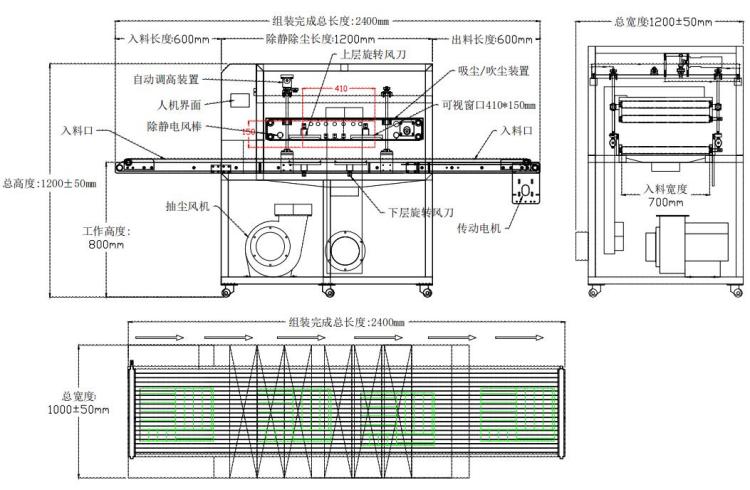1) 進(jìn)料口輸送帶:采用防靜電寬皮帶傳送(或者采用特氟龍網(wǎng)帶傳動(dòng))